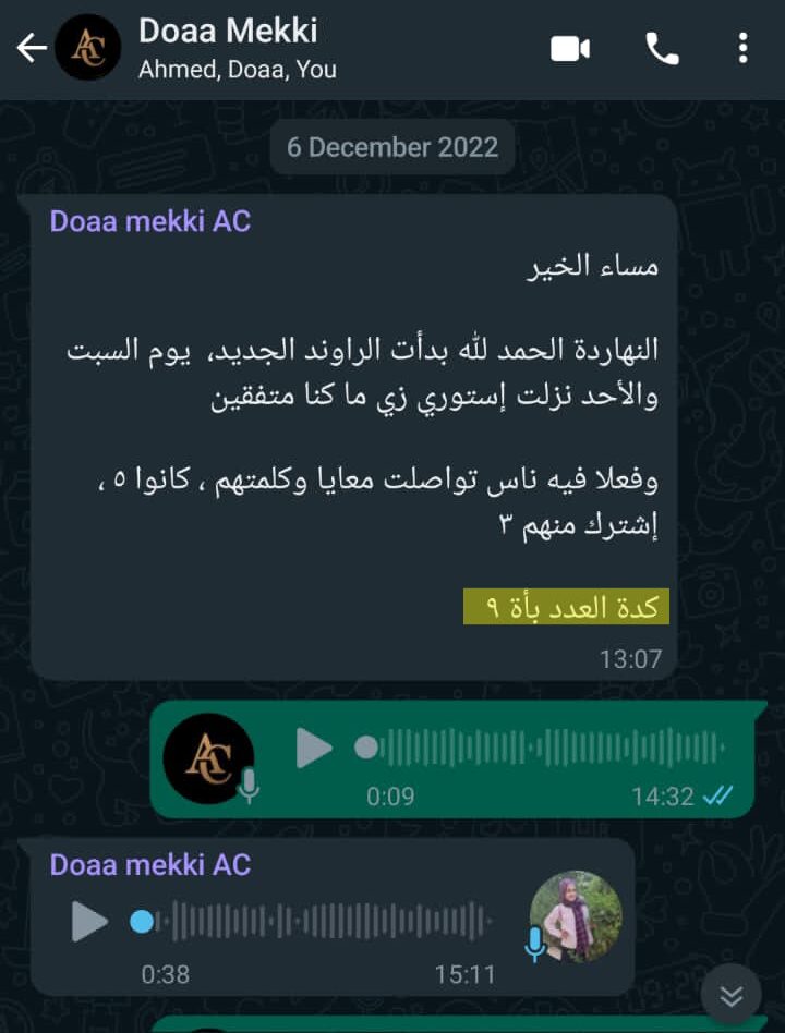 في الميعاد اللي أنتا أختارته أنا أو حد من التيم هنتصل بيك و هنتكلم معاك عن اللي بتعمله حالياً و اللي عايز توصله و المشاكل اللي بتواجهك.